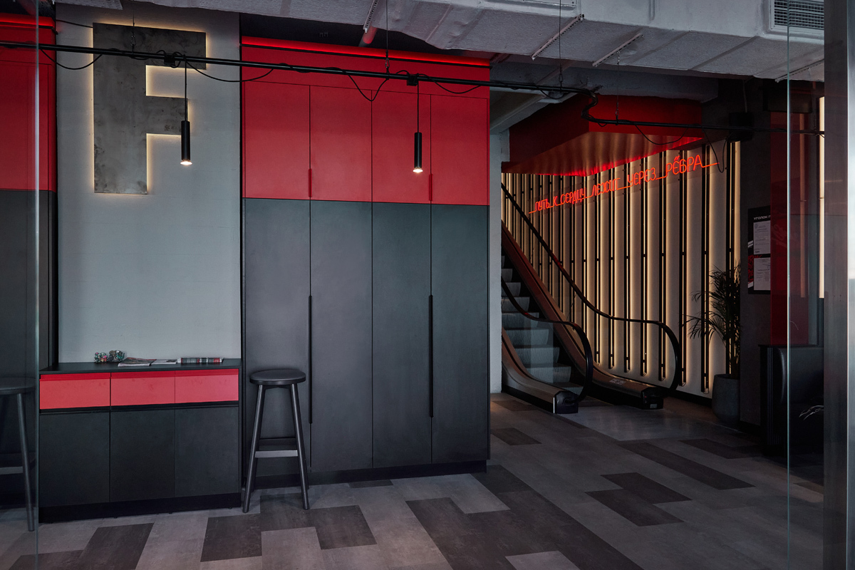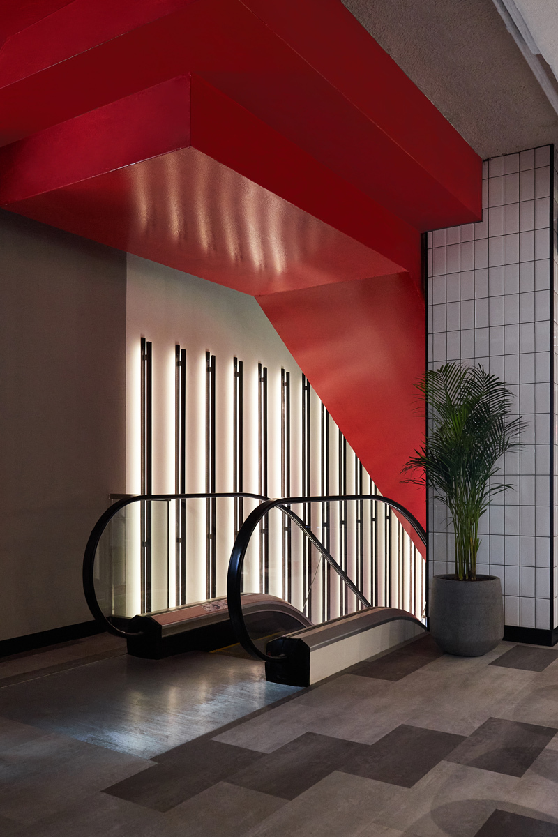 интерьерная съемка двухэтажного ресторана, эскалатор